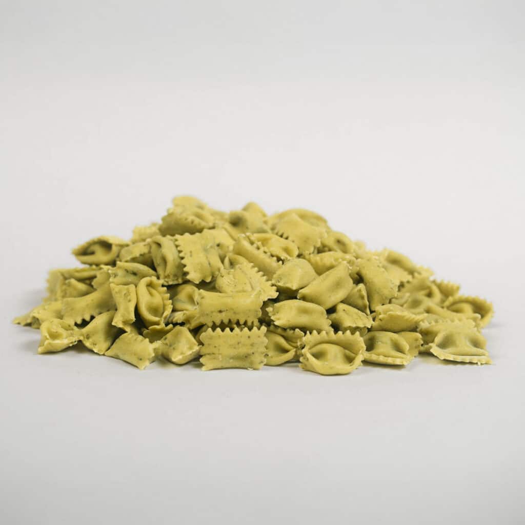 Ricotta 19.3% (siero di latte, latte, sale, acido citrico), granito di grano tenero, semola di grano duro, patate, misto uovo, formaggio grattugiato 4.8%, acqua, spinaci 2.9%, formaggio misto pecora (latte di pecora, latte vaccino, sale, caglio), latte, albume d’uovo, crema di riso, fiocchi di patata (patate disidratate), spinaci secchi in polvere, sale da cucina, formaggio vaccino stagionato, farina manitoba, olio di girasole, burro, spezie, addensante (amido modificato, destrosio).