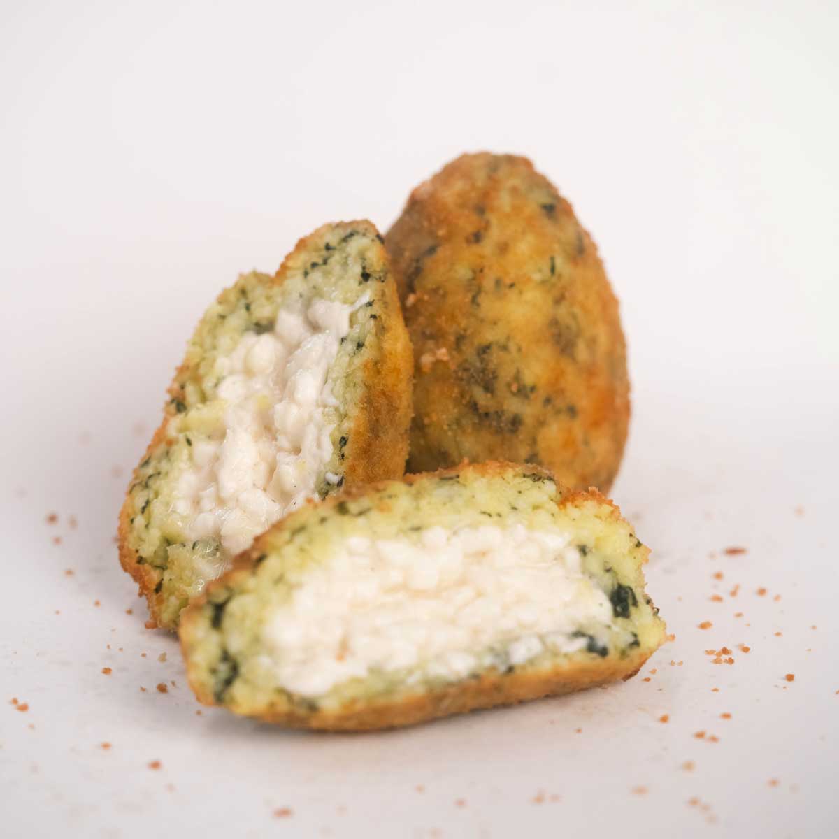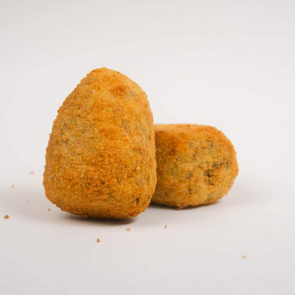 Acqua, riso (24,1%), mozzarella (20,7%) (latte vaccino pastorizzato, sale, fermenti, caglio, citrato di sodio, acido citrico, sorbato di potassio), misto uovo, olio di girasole, spinaci (1,2%), pane grattugiato (farina di grano tenero tipo “0”, acqua, sale, lievito di birra, farina di frumento maltato), sale da cucina, curcuma in polvere.