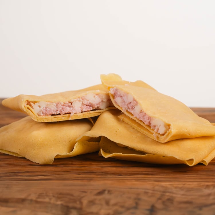 prosciutto cotto 23.1% (carne di suino, sale, proteine del latte, destrosio, saccarosio, aromi naturali, antiossidante: ascorbato di sodio, conservanti: nitrito di sodio), mozzarella (latte vaccino pastorizzato, sale, fermenti, caglio,citrato di sodio, acido citrico, sorbato di potassio), ricotta (siero di latte, latte, sale, acido citrico), manitoba farina, latte, uova fresche, formaggio vaccino stagionato (latte, sale, fermenti lattici, caglio), olio di girasole, sale da cucina