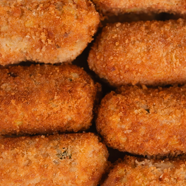 stagionato, patate, cipolle, pane grattugiato (farina di grano tenero tipo “”0″”, acqua, sale, lievito di birra, farina di frumento maltato), fiocchi di patata (patate disidratate), latte, misto uovo, sale da cucina, manitoba farina, burro, aromi naturali, spezie, maggiorana in plv, erbe aromatiche, curcuma in plv