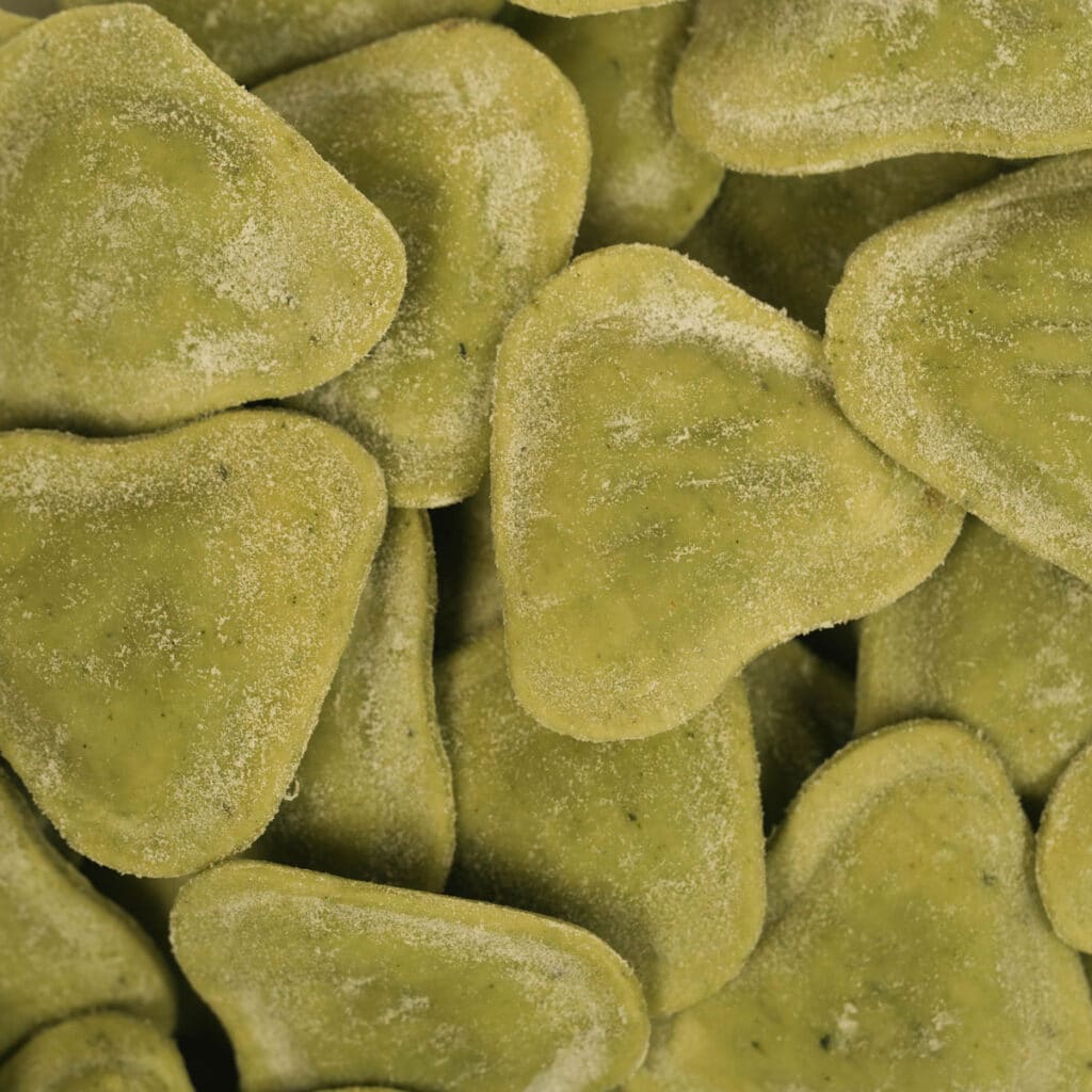 Ricotta (siero di latte, latte, sale, acido citrico), semola di grano duro, granito di grano tenero, mozzarella (latte vaccino pastorizzato, sale, fermenti, caglio, citrato di sodio, acido citrico, sorbato di potassio), misto uovo, patate, basilico sott’olio 4.7% (basilico, olio di semi di girasole, sale, acido ascorbico), crema di riso, albume d’uovo, acqua, pane grattugiato (farina di grano tenero tipo “0”, acqua, sale, lievito di birra, farina di frumento maltato), aromi naturali, fiocchi di patata (patate disidratate), siero di latte in polvere, spinaci secchi in polvere, pinoli 0.7%, sale da cucina.