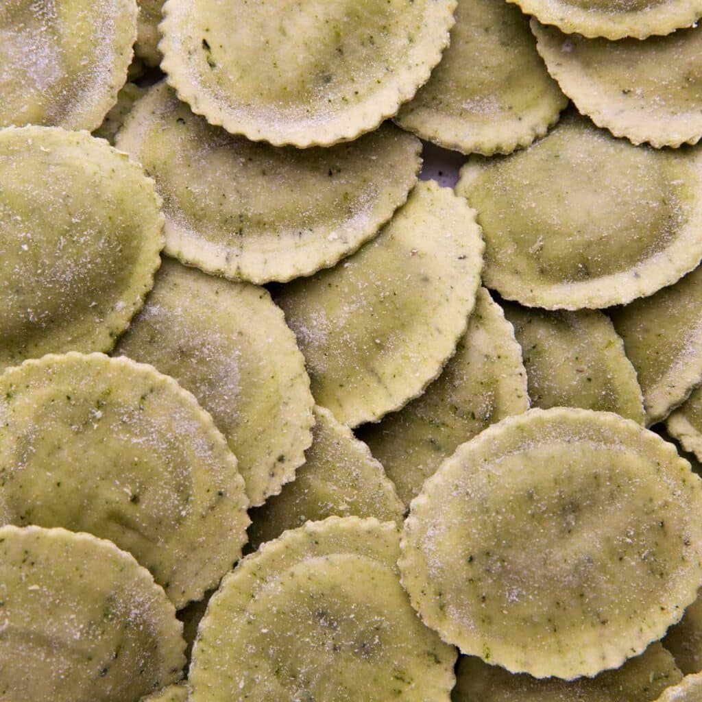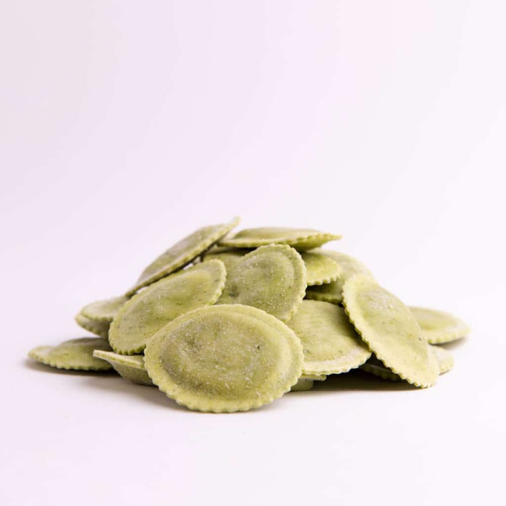 ricotta (siero di latte, latte, sale, acido citrico), semola di grano duro, granito di grano tenero, spinaci, mozzarella (latte vaccino pastorizzato, sale, fermenti, caglio, citrato di sodio, acido citrico, sorbato di potassio), misto uovo, borragine sott’olio 4.3% (borragine 50%, olio di semi di girasole, sale, acido sorbico), formaggio vaccino stagionato, noci 2.9%, albume d’uovo, crema di riso, pane grattugiato (farina di grano tenero tipo “0”, acqua, sale, lievito di birra, farina di frumento maltato),acqua, aromi naturali, siero di latte in polvere, erbe aromatiche, spinaci secchi in polvere, sale da cucina, basilico sott`olio (basilico, olio di semi di girasole, sale, acido ascorbico), spezie, olio di girasole