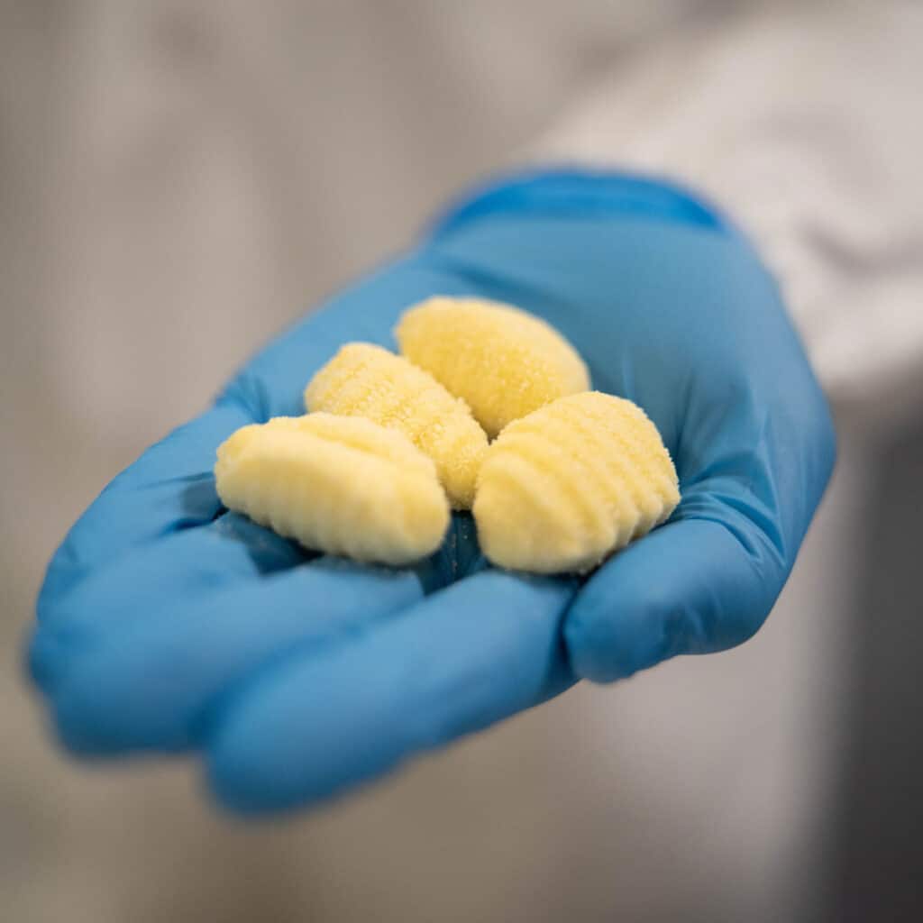 Soffici e rigati: i nostri gnocchi raccontano la semplicità della cucina casalinga italiana. Solo patate selezionate e farina di patate, lavorati per ottenere quella consistenza rustica che si sposa bene con un ragù robusto o un sugo leggero.