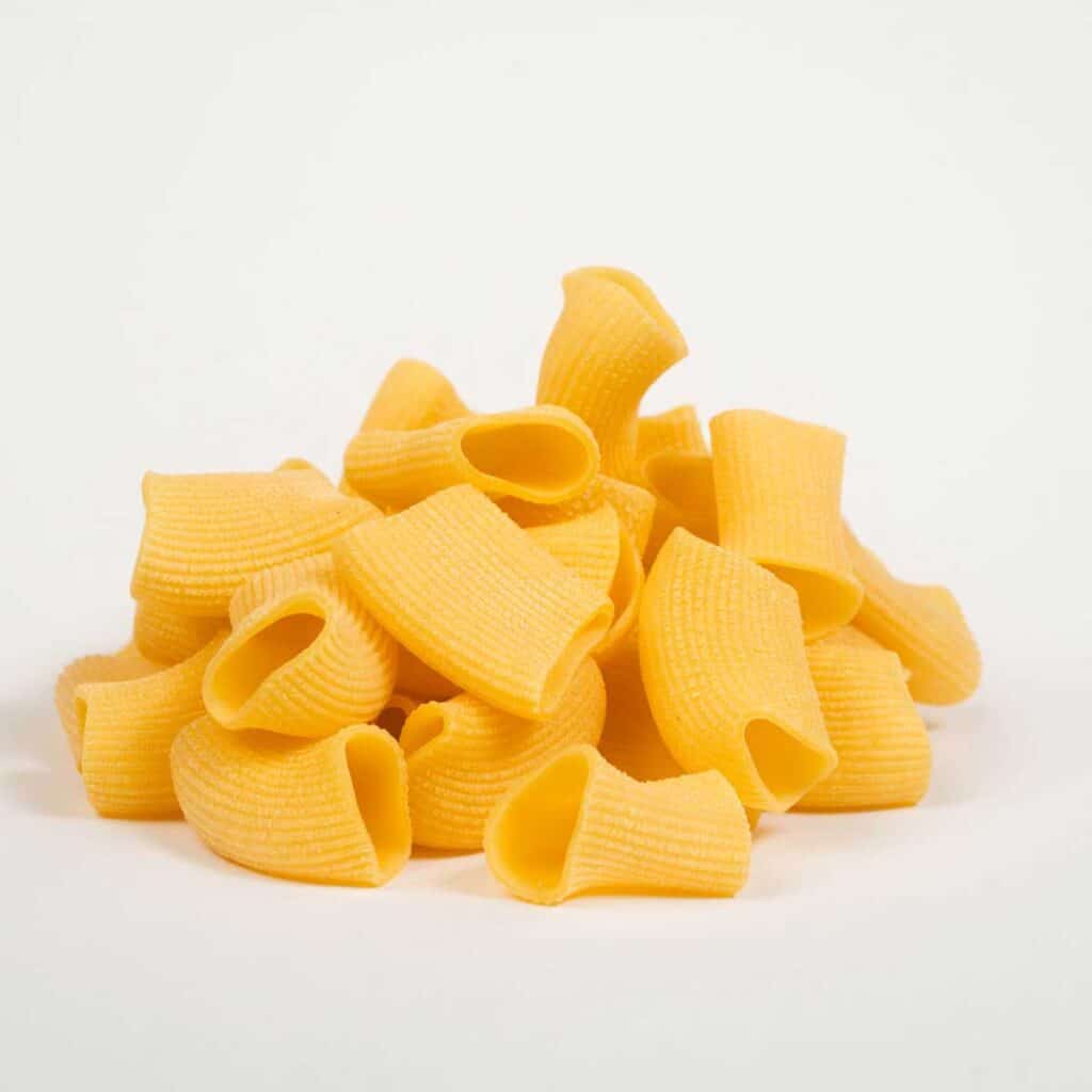I fusilloni sono la versione extralarge dei fusilli. Con le uova fresche nell’impasto diventano una pasta nobile, perfetta per sughi cremosi o piatti di festa. La forma elicoidale raccoglie bene…