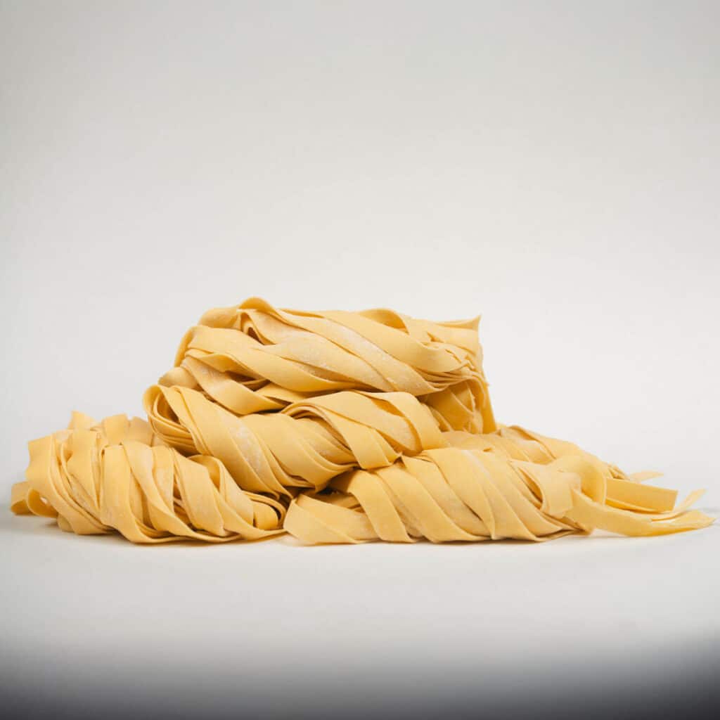 Dal cuore dell’Abruzzo, forma quadrata, consistenza corposa e sfoglia all’uovo ruvida il giusto per trattenere il sugo. Preparati con uova fresche e semola italiana: veri spaghetti con le spalle larghe.