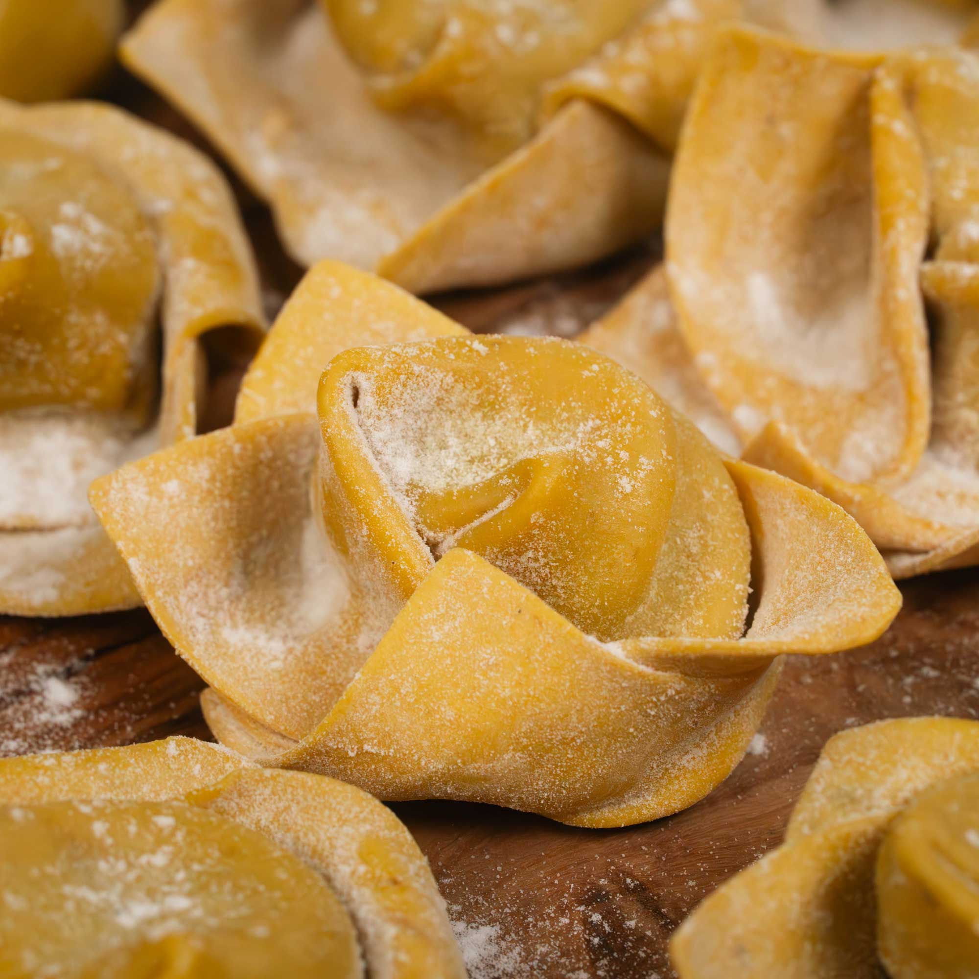 Tortello Fatto A Mano con Ragù Napoletano, un ripieno di carne di manzo cotta per quattro ore a cui viene aggiunta la cipolla che durante la lunga cottura ne rilascia…